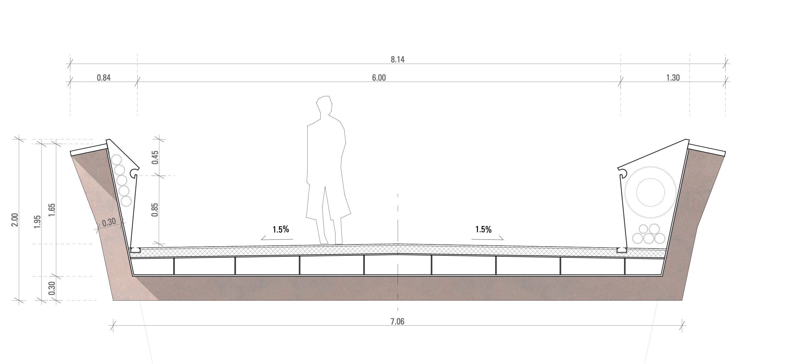 Le tracé proposé pour l’ensemble des ouvrages s’inscrit dans une réflexion qui vise à répondre à l’ensemble des contraintes en présence, notamment foncières et topographiques, mais qui garantisse aussi une grande lisibilité de parcours. Le tracé élégant avec des courbes aux rayons généreux permet d’apporter une évidence au tracé et de maintenir une vitesse constante de déplacement à vélos.